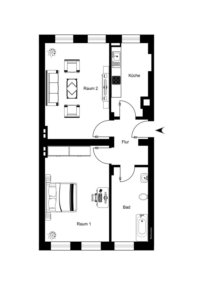 | Unit TE04 | Floor Location QG EG links | Room 2 | Living space ca. 55.2 m² | Price – | Status Sold | ||