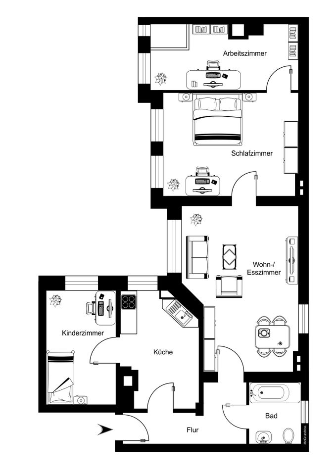Impresses with historic charm and modern comfort. An elegant sisal carpet adorns the staircase, while stucco decorations embellish the entrance area. Partially stucco-adorned apartments add a touch of luxury to each home. The well-maintained communal areas, along with the high-quality wooden floorboards and parquet flooring in the apartments, offer timeless elegance and exceptional quality.