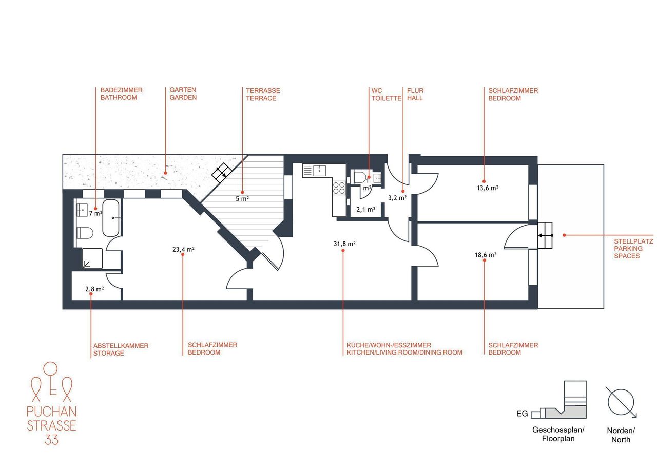 | Unit WE02 | Floor Location FB ground floor | Room 4 | Living space ca. 105 m² | Price 379,000 € | Status Available |