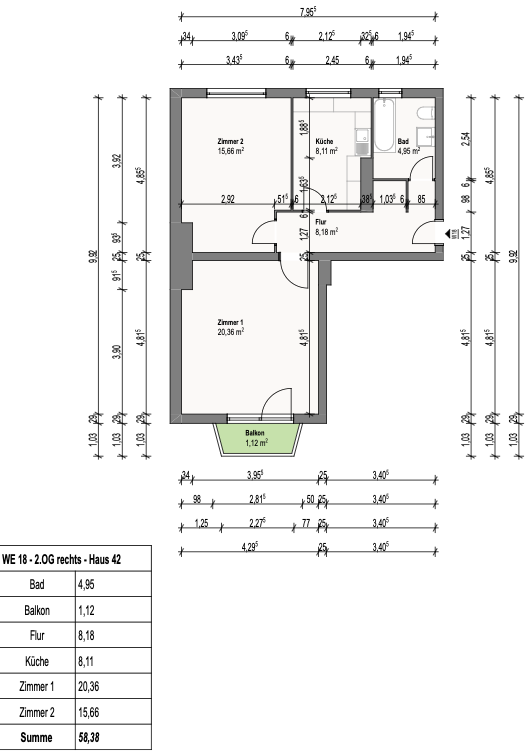 | Einheit WE18 | Etagenlage 2.OG rechts | Zimmer 2 | Wohnfläche ca. 57,3 m² | Preis 367.000 € | Status Verfügbar |